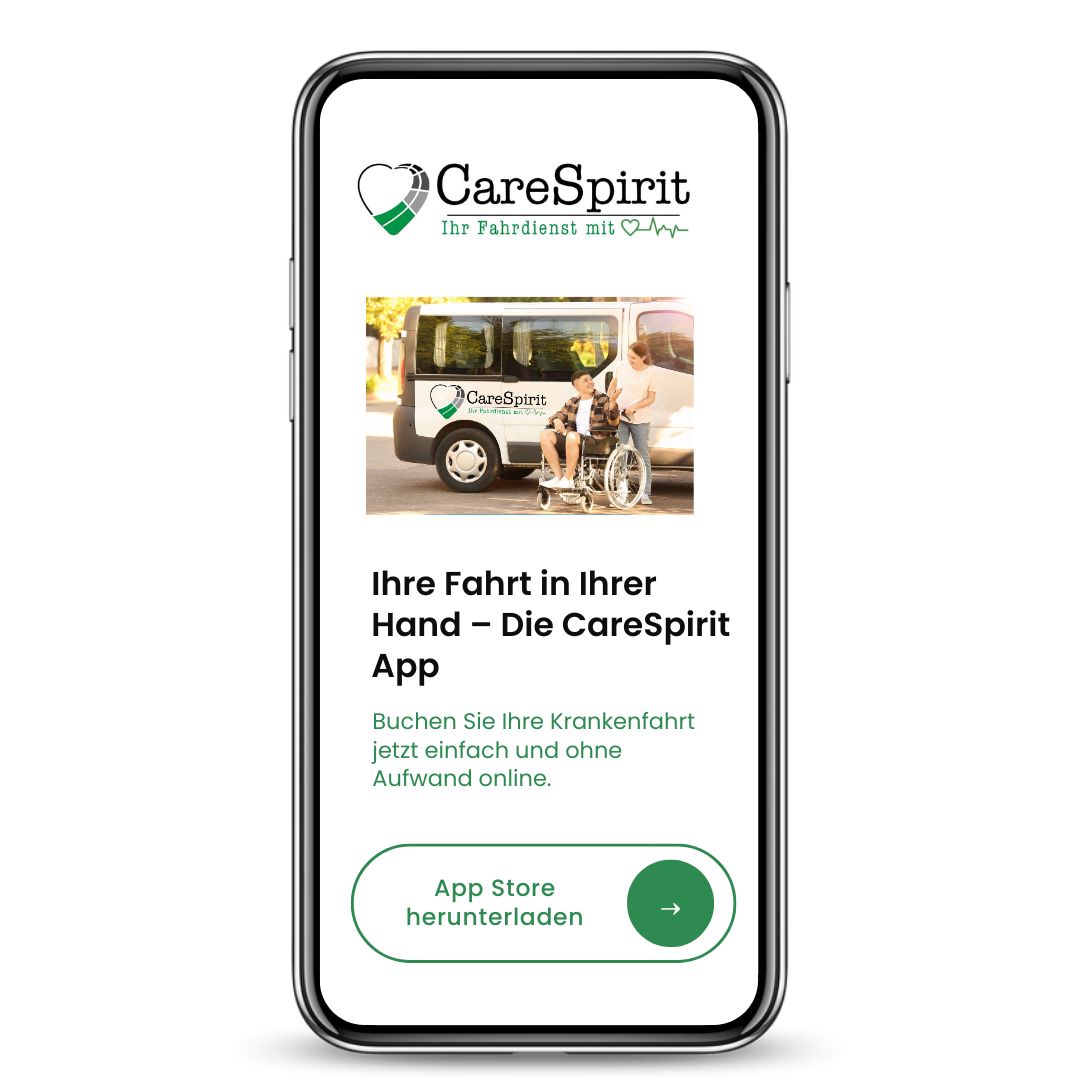 Dank unserer modernen CareSpirit-App können Sie Fahrten bequem buchen.